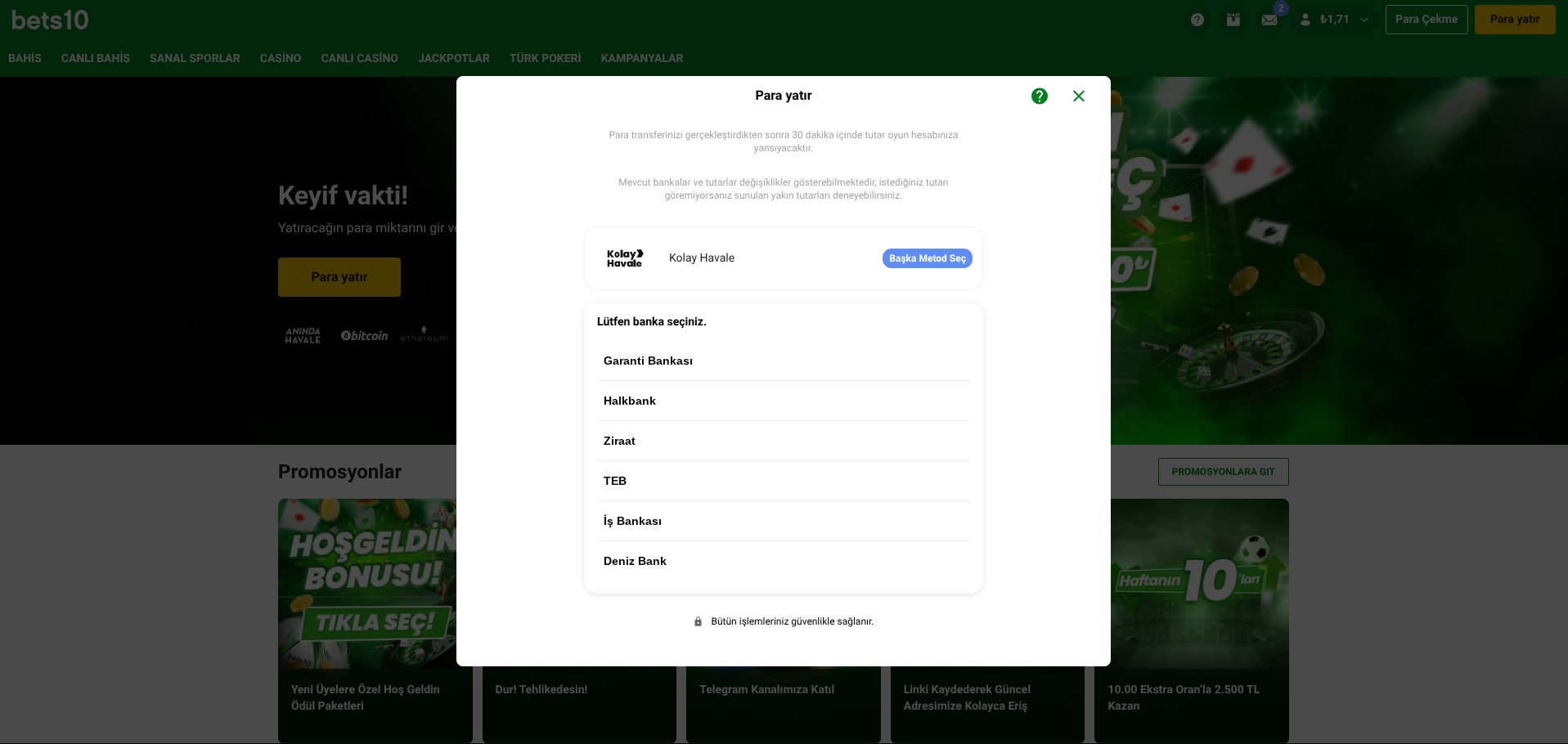Kolay Havale internet bankacılığı kullanarak hesabınıza birkaç dakika içerisinde para yatırmanızı sağlayan bir para yatırma metodumuzdur.
