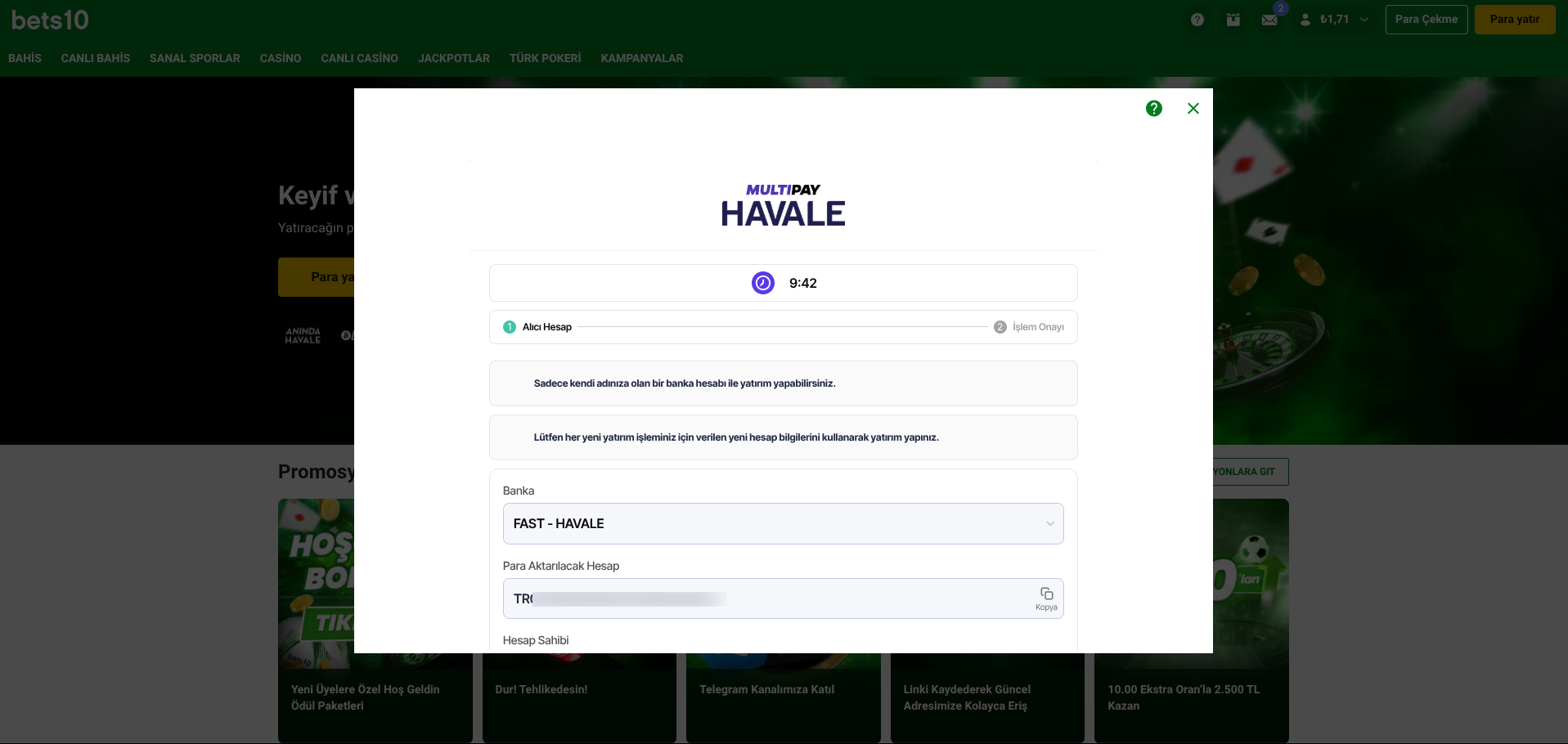 Böylece karşınıza havale işlemini gerçekleştireceğiniz isim ve IBAN numarası gelir. Bu aşamada bankanızın internet şubesine ayrı olarak giriş yapın ve bu isim ve IBAN numarasını kullanarak havale işlemini gerçekleştirin.